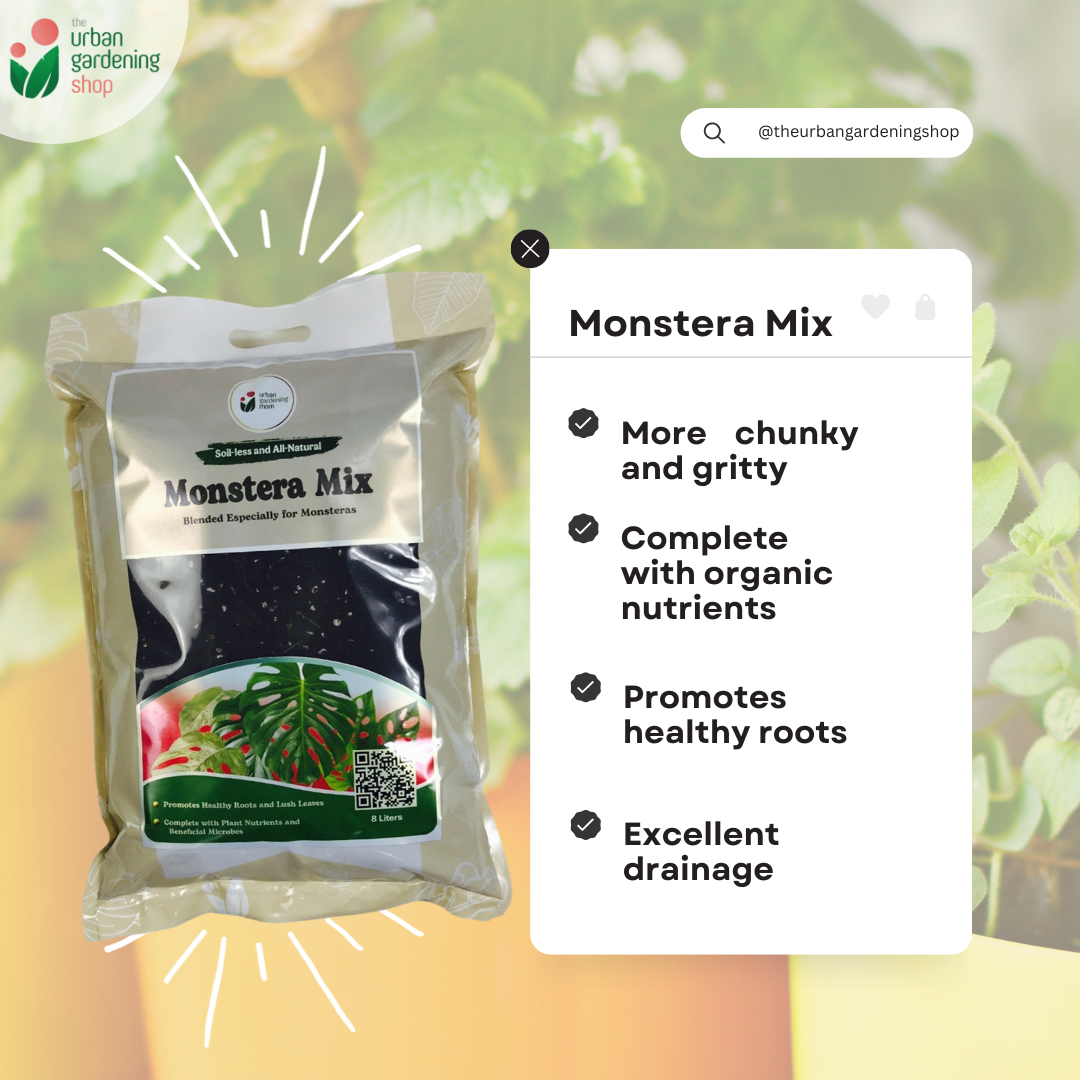 In the tropical forests where Monsteras originated, their roots grow into the ground and around trees where they climb. So they are naturally suited for an environment where water and air can flow easily. Using ordinary garden soil (which is usually dense and sticky) for monsteras may result in over-wet roots, which often lead to root rot or unhealthy-looking plants. The best potting mix for monsteras should be well-draining, airy but still retains moisture, without being water-logged.