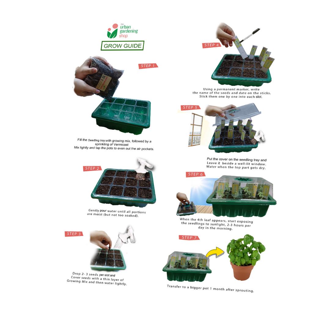 SEED GROW KIT with Tray and Humidity Dome- Includes Potting Mix, Seedling Tags and Free Seeds